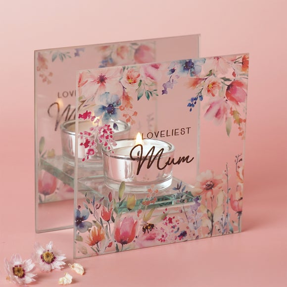Create a warm and uplifting ambience with this beautifully designed glass tealight holder from The Cottage Garden collection. Soft pastel florals frame the mirrored backdrop, reflecting the gentle flicker of candlelight for a stunning, glowing display. The heartfelt message for a choice of recipient on the front adds a personal and meaningful touch, making it perfect for celebrating someone special. Finished with a delicate glass shelf for the tealight (not included), it brings elegance and sentiment to any room. A thoughtful gift that shows just how cherished they truly are.