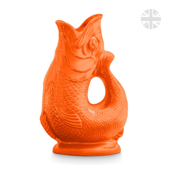 Add a quirky touch and a historic piece of UK heritage design to your kitchen with the Wade Fish Jug. This versatile piece has the original Wade design which has stood the test of time over 150 years, and can be used as a jug, vase, decanter or even utensil holder. Available in a rainbow of colours to match every aesthetic, the 0.6 or 1.2 litre capacity is perfect for quenching your thirst on a hot busy day. Beautifully crafted from high-quality ceramic and finished in a glossy glaze, each jug is designed to be as unique as you. The iconic glugging sound made when pouring adds a delightful charm, making it a conversation starter in any room. Just make sure it's at least three-quarters full to hear this sound. Proudly made in Stoke-on-Trent, England, it sits proudly within the Wade Pottery Brand. This wonderful jug is a must have for any home. Hand washing is recommended to keep your jug looking its best.