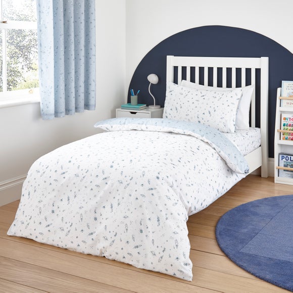 Blast off to bedtime with our To The Moon Quilt Cover and Pillowcase Set! Made from 100% super-soft cotton, it’s naturally breathable and gentle for a cosy night’s sleep. The crisp white front features a fun spaceship design zooming past planets and stars; perfect for little astronauts with big dreams. Flip it over for a cool blue reverse when it’s time for a new adventure. Machine washable and easy to care for, it’s practical as well as out-of-this-world awesome. Complete the look with matching items for a stellar bedroom makeover!