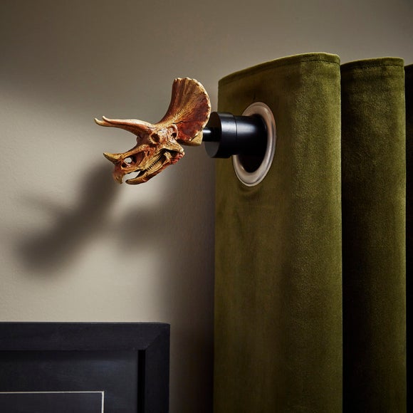 Crafted with meticulous attention to detail, this extendable curtain pole showcases a captivating Triceratops skull design that effortlessly transports you to a bygone era. The elegant matt black hardware finish adds a touch of sophistication, complementing any interior with a subtle yet distinctive aesthetic.
