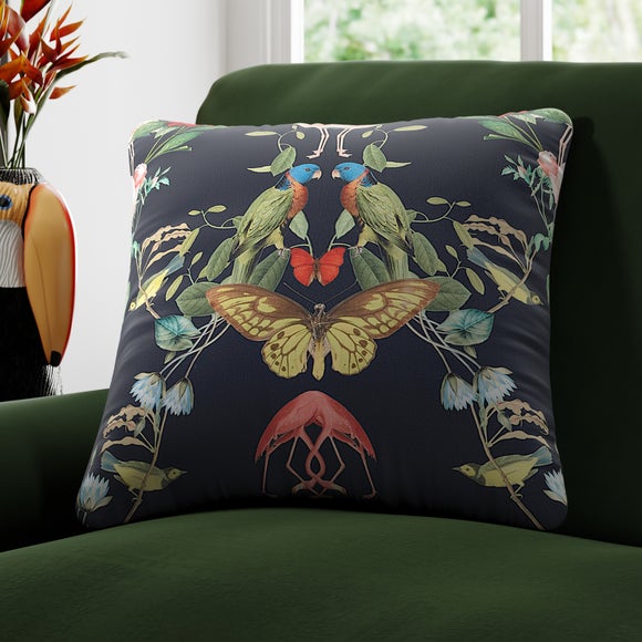 From the intricate pattern of a butterfly’s wing to the petal formation of a flower, symmetry is everywhere in nature. In the Kaleidoscope collection, elements from nature collide to create mesmerising abstract shapes and mirrored compositions. Brimming with detail and pattern, this dizzying journey uses colour from brightly coloured butterflies and tropical birds on a rich background for a dramatic look.