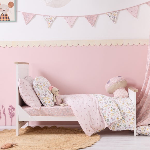 Add a little storybook magic to bedtime with the Tutti Bambini Tiny Tails Duvet Cover and Pillowcase Set, complete with a printed reversible duvet cover and two coordinating pillowcases. Made from 100% cotton muslin, it’s lightweight, breathable and super soft against sensitive skin; ideal for keeping little ones comfy all night long. The muslin fabric is also surprisingly hard-wearing, designed to handle regular washing while staying gentle and snugly. With quick-drying, everyday-easy care, it keeps its shape and softness wash after wash (because nursery laundry is never-ending). Finished with gentle colours and whimsical details, the Tiny Tales Collection brings a warm, dreamy feel to your nursery