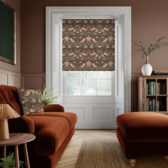 Perhaps William Morris’s most recognisable design, Strawberry Thief was inspired by the thrushes that crept under Morris’s strawberry nets in his garden at Kelmscott Manor, Oxfordshire. The original pattern took several days to print using hand-carved woodblocks to build up the different colours, and ‘Strawberry Thief’ was consequently one of Morris’s firm’s most expensive cottons. Designed in 1883, Strawberry Thief remains one of William Morris’s most popular and iconic designs. Showcasing this beautiful design, this Made to Measure roller blind is available in multiple colourways to suit your decor. Made from light filtering polyester, it enhances natural light in your room while providing privacy making this blind a practical and stylish addition to your room.