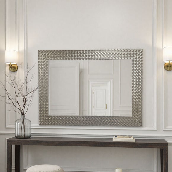 Add impact to your walls with the Yearn Hammered Framed Bevelled Rectangle Wall Mirror. The textured frame brings depth and definition, creating a striking focal point in any room. Bevelled glass reflects light beautifully, helping spaces feel brighter and more open. Its versatile design works well above sideboards, console tables, or in hallways.