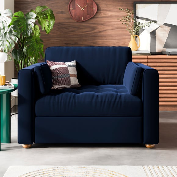 The Zoe II Velvet Snuggle Chair brings a fresh, contemporary twist to the much-loved Zoe design. Upholstered in sumptuous velvet, it features elegant buttoned detailing and a lower profile with chic ball feet. Rounded arms create a softer, more inviting look, while the bolster cushions add a modern touch. Perfect for creating a cosy corner with a refined feel.