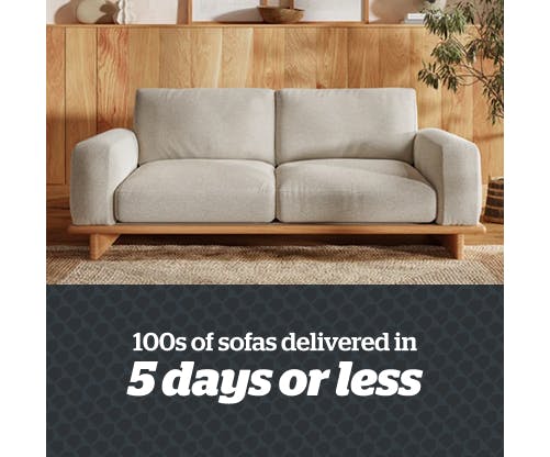 Shop sofas finished in your favourite fabric, or styles ready to be delivered STAT